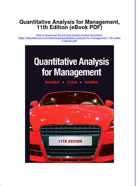 Download quantitative analysis for management 11th edition Epub online is a convenient and frugal way to read quantitative analysis for management 11th edition you love right from the comfort of your own home. Yes, there sites where you can get Epub "for free" but the ones listed below are clean from viruses and completely legal to use.